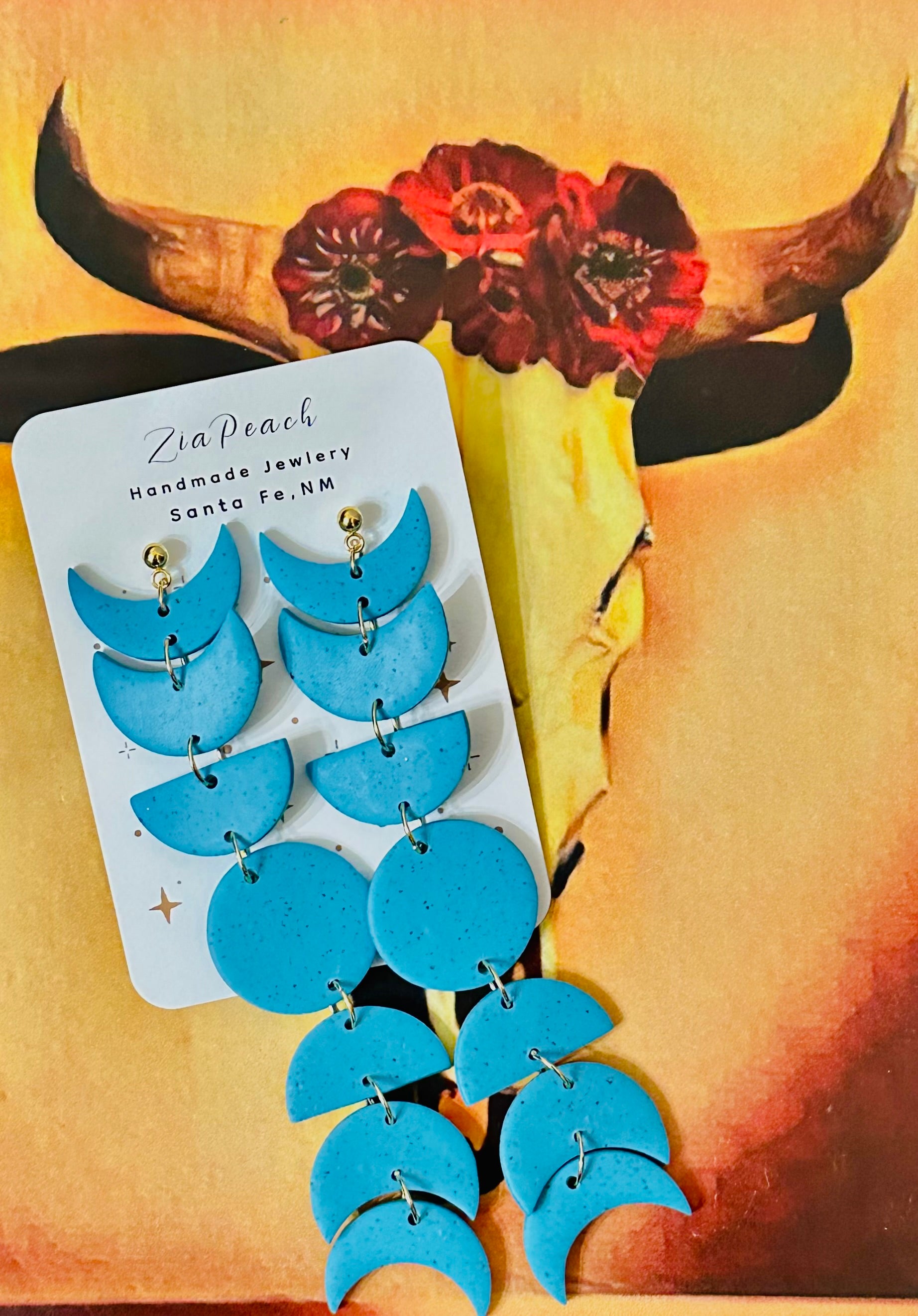 Extra long moon phases in speckled blue turquoise paired with a gold ball stud.