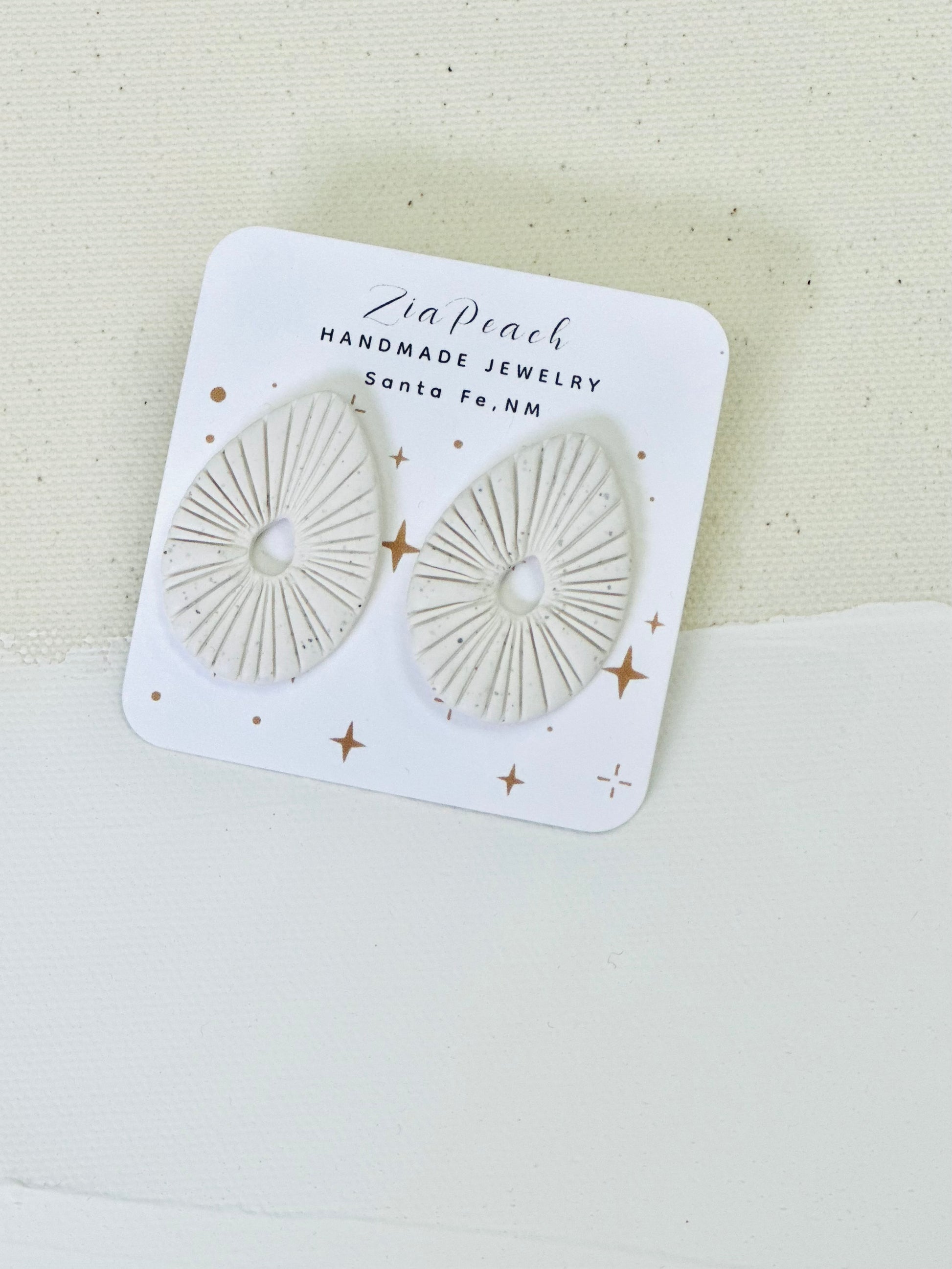 Cutout teardrop shaped textured speckled white studs